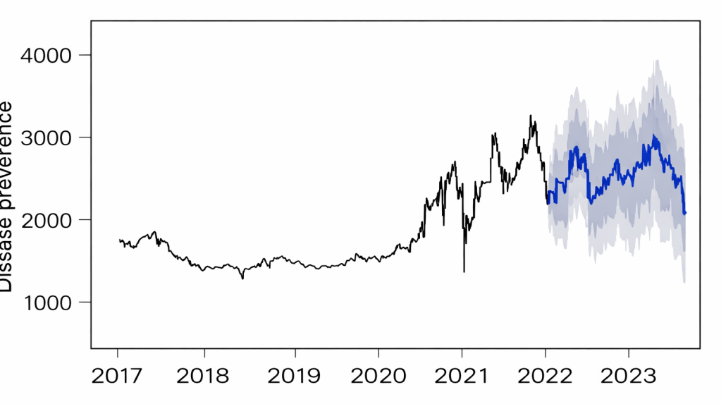 Applied ARIMA time-series models to five years of epidemic data from 20 replicate populations. Leveraged environmental variation among replicates to improve forecasting accuracy by substituting spatial variation for limited temporal data.